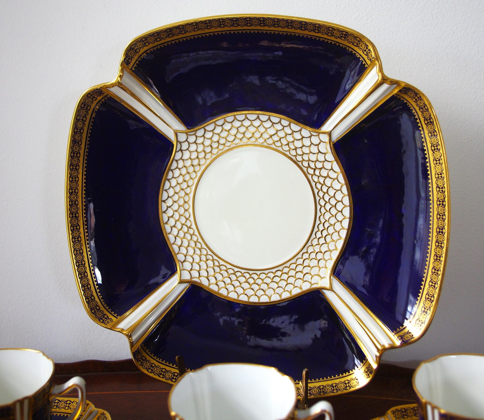 Antique Spode Copeland’s England Tea Set | Cobalt Blue Gold | Scalloped Gold Cups & Saucers | R5437 | English Bone China Tea Service c. 1900